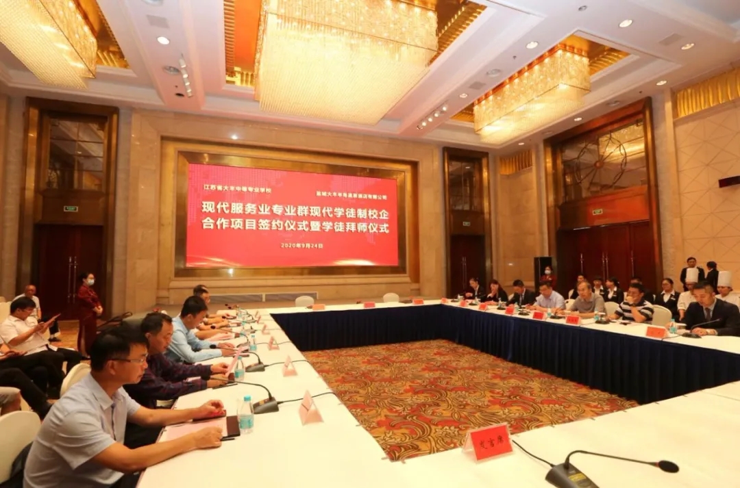 據悉,大豐中等專業學校和大豐港集團旗下半島溫泉酒店簽訂協議,雙方將共同探索建立校企“聯合招生、聯合培養、定向就業”的人才培養長效機制,為創新人才培養方式提供了一個嶄新平臺。通過合作,學校和企業進行優勢互補,實現資源共享。活動中,學校、酒店、家長、學生四方代表簽訂了現代學徒制工學交替跟崗實習協議,并舉行首批學徒制拜師儀式,23名學生順利拜師跟崗。