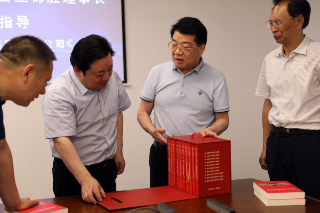 贈書儀式上,王錦勝向周正雄董事長及相關同志介紹了《鹽城市革命老區發展史》叢書,他說,《鹽城市革命老區發展史》的出版適逢其時,突出了鹽城革命老區的紅色印記,突出了改革開放時期的成就和經驗,突出了新時代的新浪潮,是學習四史的鮮活教材。