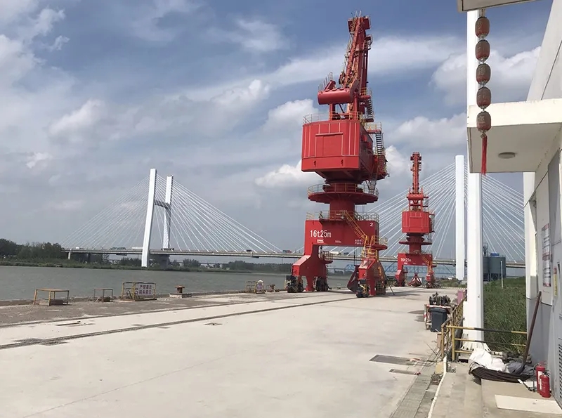碼頭工程建設規模為4個1000噸級通用泊位(水工結構按靠泊3000噸級船舶設計)。碼頭泊位長度324米。結構設計船型為3000t級江海直達貨船,設計代表船型為1000噸級散雜貨船,兼顧船型為1拖+3×1000噸級船和500噸級散雜貨船。設計年吞吐量180萬噸,年通過能力194萬噸。1#、3#、4#泊位各配置1臺16t-20m低門架門座式起重機(臺架吊),2#泊位設置1臺裝船機及斜槽輸送系統。