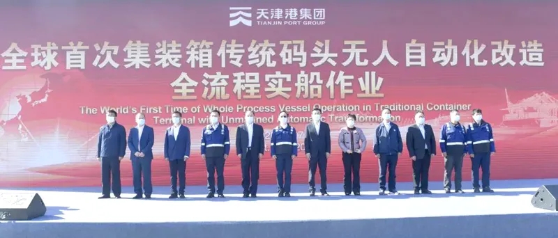 10月17日,天津港集裝箱碼頭有限公司北區船邊,隨著最后一個集裝箱在中谷“新海明”輪穩穩落下,全球首次集裝箱傳統碼頭無人自動化改造全流程實船作業在天津港取得成功。這標志著,天津港在新一代無人自動化集裝箱碼頭實踐應用上邁出突破性一步,為世界智慧港口建設給出了“天津范本”。