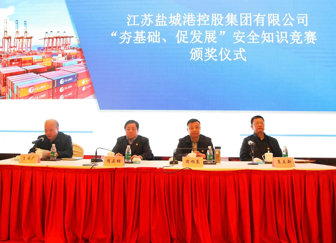 12月16日下午,鹽城港集團舉行“夯基礎、促發展”安全知識競賽頒獎儀式。集團黨委書記、董事長、總經理周正雄出席并講話,集團黨委委員、董事、副總經理丁安廣主持儀式。