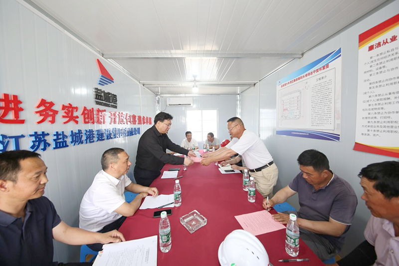 為進(jìn)一步推進(jìn)黨風(fēng)廉政建設(shè)工作,推進(jìn)鹽城港建設(shè)集團(tuán)廉政示范點(diǎn)建設(shè),打造廉潔示范工程。近日,鹽城港建設(shè)集團(tuán)組織開展廉政建設(shè)進(jìn)工地專題活動(dòng),建設(shè)集團(tuán)班子成員、工程項(xiàng)目管理人員、紀(jì)檢監(jiān)察人員以及各施工分包單位代表參加。