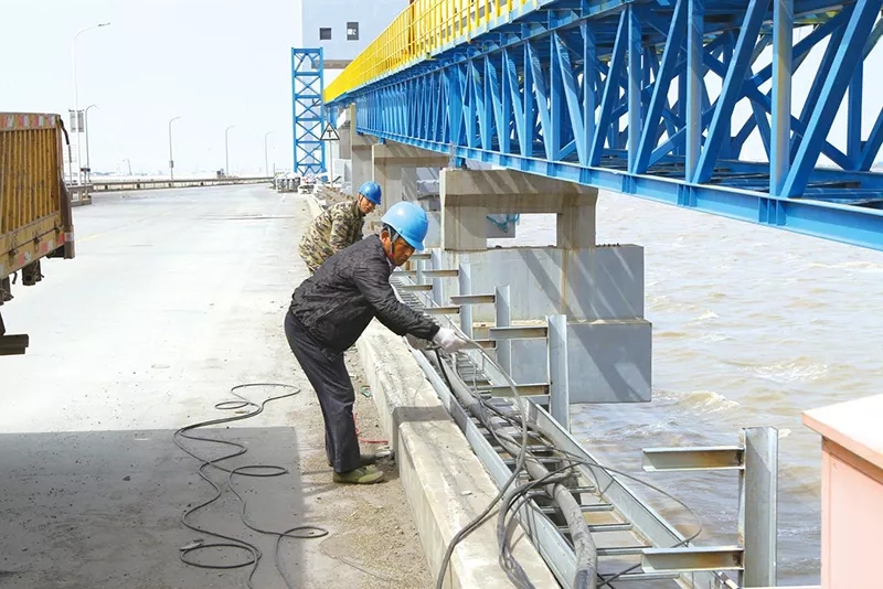 該項目是集團2021年重點項目,總投資約1.6億元,主要進行鋼結構廊道安裝、電氣安裝、氣墊機等設施設備安裝作業。截至5月底,已完成95%的土建工程,80%的鋼結構安裝,35%的氣電機設備安裝和35%的電控工程。計劃于6月底完成全部土建、鋼結構安裝,BC3、BC4設備主體調試。