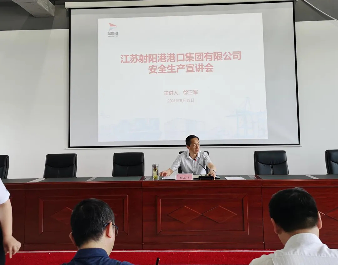 根據鹽城港集團安全生產宣講活動安排,6月12日上午,射陽港區總經理徐衛軍主持召開安全生產學習宣講會議,公司及下屬單位全體員工參加會議。