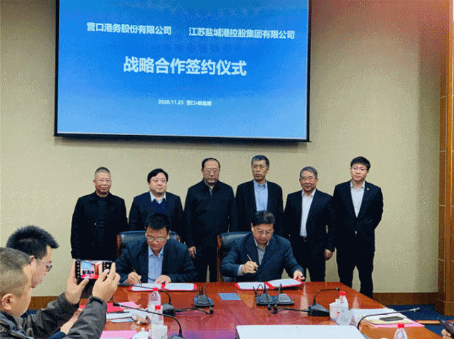 11月23-24日,集團黨委書記、董事長、總經(jīng)理周正雄一行相繼拜訪營口港務(wù)集團、大連港集團以及遼寧港口集團,并與營口港、大連港、上海郁州海運簽訂戰(zhàn)略合作協(xié)議,開通了鹽城港至營口港的集裝箱班輪航線。