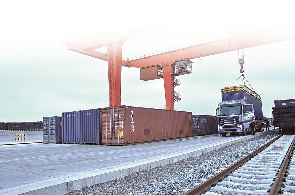 鹽城北站貨場組織吊裝農(nóng)副產(chǎn)品準備上專列。 記者 黃海峰 攝