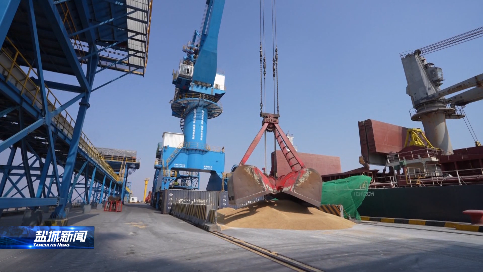 來到鹽城港大豐港區(qū)糧食碼頭,一艘裝載著澳大利亞大麥的貨船正在卸貨。接下來,還將有來自巴西裝載著6萬噸大豆的貨船排隊進港。