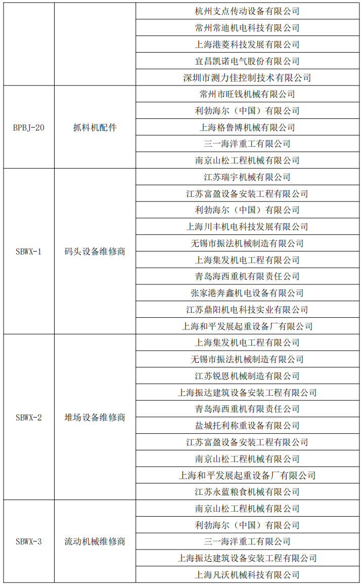 2023年港口設備維修材料備品備件合格供應商預選名錄、2023年港口設備維修服務供應商預選名錄評標結果公示