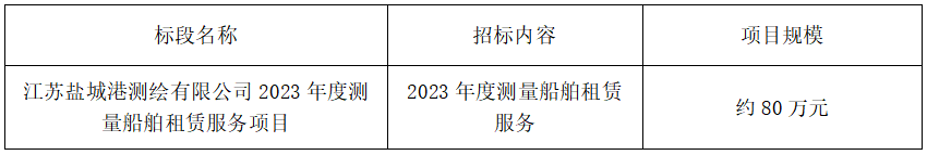 ⑴項目名稱:江蘇鹽城港測繪有限公司2023年度測量船舶租賃服務(wù)項目