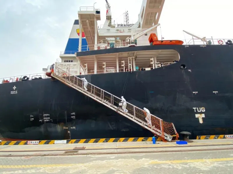 “弗朗西斯科”號輪原計劃二月中旬靠泊大豐港區(qū)進行貨物裝卸,因疫情防控、天氣惡劣等因素影響,導致大豐港區(qū)封港,船只無法正常靠岸。作為收貨方的江蘇博匯紙業(yè)公司,因長期收不到貨,導致庫存極度緊張,面臨著紙機停產的困境。集團第一時間了解情況后,當即決定利用鹽城港“一港四區(qū)”泊位資源,將該船轉港至濱海港區(qū)卸貨,解決客戶燃眉之急。在集團黨委的統(tǒng)一指揮下,相關港區(qū)主動對接,多方聯(lián)系,及時掌握船舶動態(tài),合理調配人力資源,全力保障“弗朗西斯科”號外籍貨輪順利入港停泊。