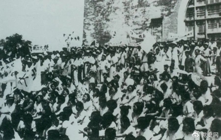 1936年6月13日,北平學生與市民在鼓樓前舉行聲勢浩大的抗日集會。