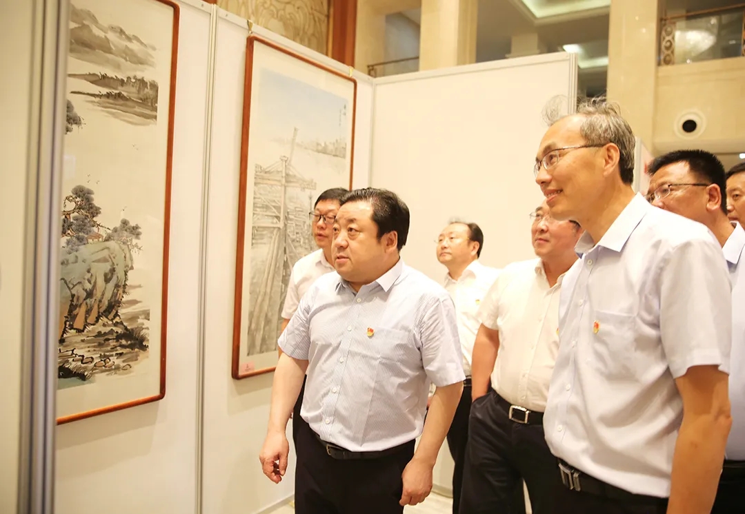 晚會開始前,周正雄還帶領與會人員參觀了集團職工書畫展。本次書畫展參展作品內容豐富,形式多樣,立意新穎,用書畫定格歷史瞬間,串聯起波瀾壯闊的百年征程,呈現出個性獨特的藝術魅力,蘊含著飽滿熾熱的藝術激情,具有較強的藝術震撼力,受到了大家的一致好評。