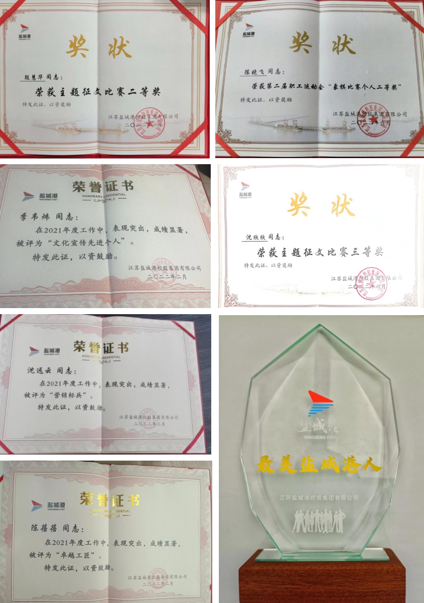 2022年,文旅集團黨總支和港泊半島酒店支部被評為“先進基層黨組織”。文旅集團洪兵、韓世軍在鹽城港集團“七一”表彰中獲評優(yōu)秀共產(chǎn)黨員稱號,蔣雷獲評優(yōu)秀共青團員稱號。港泊半島酒店職工張曉芳、湯以新、蔣慧等同志分別獲得大豐區(qū)技能狀元、鹽城市技術(shù)能手、大豐區(qū)五一勞動獎章、大豐區(qū)青年崗位能手、大豐區(qū)巾幗建功標兵稱號。