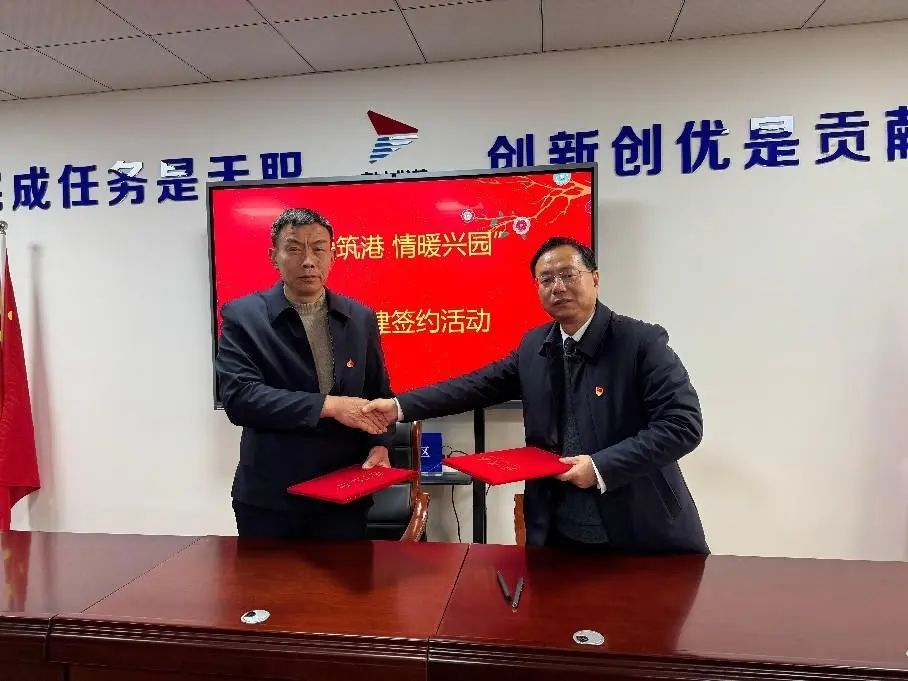 參觀結束后,雙方在港區舉行了座談會,并簽訂了《黨建共建協議》。根據協議雙方將以“互惠互利、平等協作”為原則,充分發揮黨建引領作用,進一步加強村企交流,共促鄉村振興,弘揚新四軍鐵軍精神、傳承紅色基因,合力推動基層黨建工作再上新臺階。