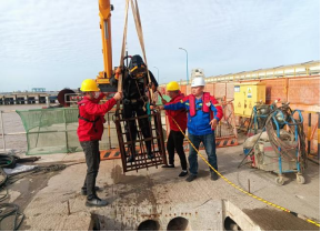 “水下有較大的塊石和槽鋼,不好清理,可能要用切割機(jī)來配合”,面對(duì)潛水員發(fā)出的信號(hào),現(xiàn)場(chǎng)負(fù)責(zé)人正在有條不紊地對(duì)現(xiàn)場(chǎng)施工進(jìn)行合理安排,以確保水下石塊、槽鋼等雜物能安全及時(shí)地進(jìn)行清除。