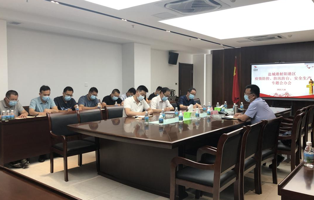 7月26日下午,鹽城港集團(tuán)黨委委員、董事、副總經(jīng)理夏立新前往射陽港區(qū),主持召開疫情防控、防汛防臺及安全生產(chǎn)專題會辦會議,港區(qū)副總經(jīng)理秦海、范云飛、董棟梁,各部門、單位負(fù)責(zé)人參加會議。