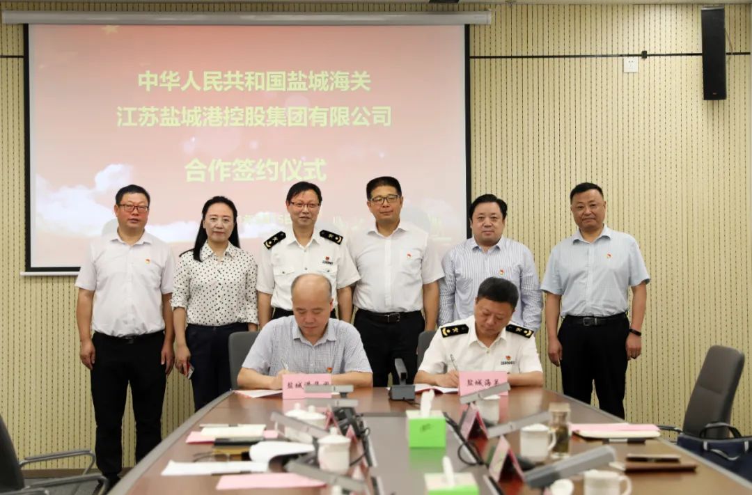 9月15日,集團(tuán)與鹽城海關(guān)簽訂意向性戰(zhàn)略合作協(xié)議。鹽城海關(guān)黨委書(shū)記、關(guān)長(zhǎng)胡正良,集團(tuán)黨委書(shū)記、董事長(zhǎng)、總經(jīng)理周正雄出席簽約儀式并鑒簽。市口岸辦副主任陳國(guó)亮,集團(tuán)黨委委員、紀(jì)委書(shū)記周旭東等參加活動(dòng)。鹽城海關(guān)黨委委員、副關(guān)長(zhǎng)李健和集團(tuán)黨委委員、董事、副總經(jīng)理丁安廣進(jìn)行現(xiàn)場(chǎng)簽約。
