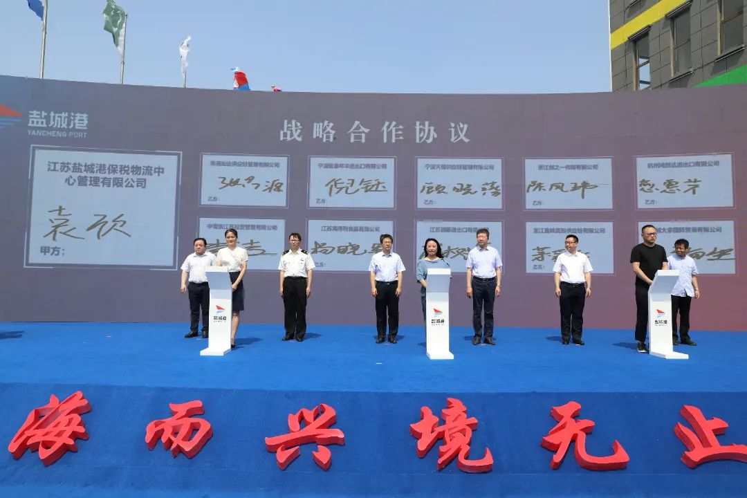 啟幕儀式上還舉行了江蘇鹽城港保稅物流中心“云”簽約儀式。簽約儀式后,與會人員走進跨境電商產業園日本館、東南亞館、韓國館等場館進行觀摩,詳細了解跨境電商產業園運營情況。