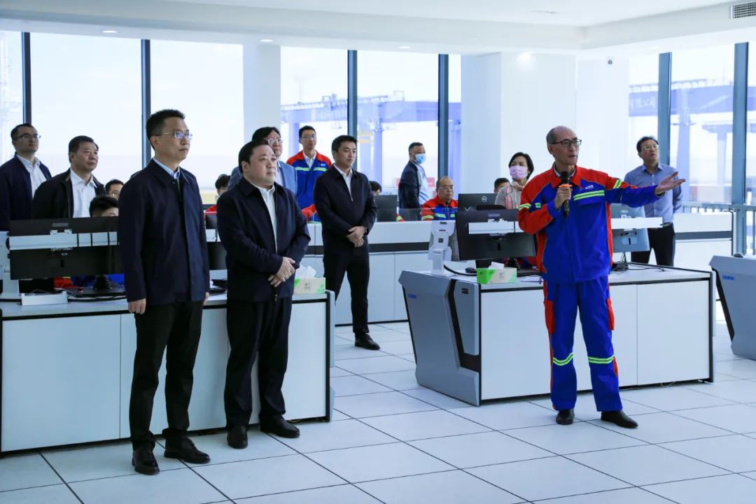 儀式結(jié)束后,與會(huì)領(lǐng)導(dǎo)還前往自動(dòng)化集裝箱堆場(chǎng)指揮中心,詳細(xì)聽(tīng)取現(xiàn)場(chǎng)操作講解,并觀(guān)摩堆場(chǎng)運(yùn)營(yíng)情況。