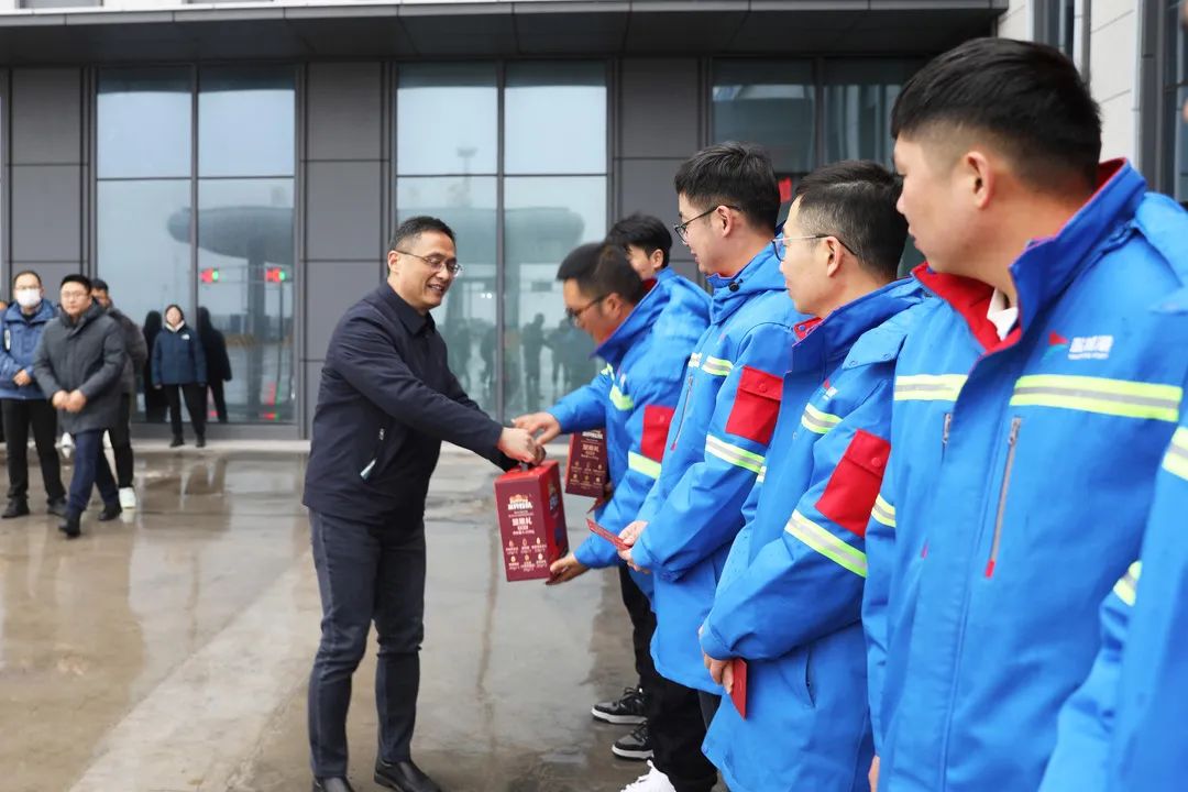 1月22日,大年初一,碼頭一線到處洋溢著節日喜慶氣氛。受集團黨委、董事會委托,當天上午,集團黨委副書記、董事、總經理陸帥率隊前往大豐港區看望慰問堅守在一線工作崗位的工作人員,代表集團黨委、董事會向他們致以新春的祝福和節日的問候。鹽城海關二級高級主辦李健,集團副總經理袁欣等參加。