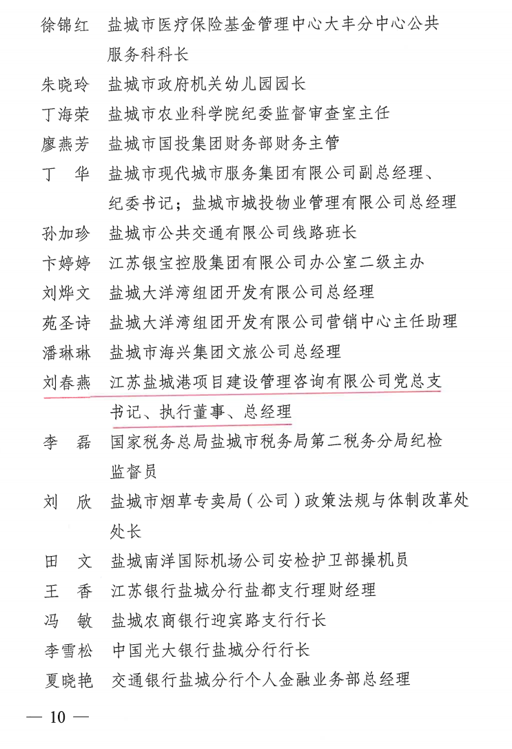 ????近日,市城鎮(zhèn)婦女“巾幗建功”活動(dòng)領(lǐng)導(dǎo)小組、市農(nóng)村婦女“雙學(xué)雙比”競(jìng)賽活動(dòng)領(lǐng)導(dǎo)小組、市婦女聯(lián)合會(huì)聯(lián)合發(fā)布《關(guān)于命名2021-2022年度全市城鄉(xiāng)婦女崗位建功先進(jìn)集體(個(gè)人)的決定》,鹽城港智慧港口公司海燕班組榮獲“2021-2022年度鹽城市巾幗文明崗”榮譽(yù)稱號(hào),鹽城港項(xiàng)目建設(shè)管理咨詢公司黨總支書記、執(zhí)行董事、總經(jīng)理劉春燕榮獲“2021-2022年度鹽城市巾幗建功標(biāo)兵”榮譽(yù)稱號(hào)。