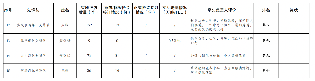 第一名:航運集團先鋒隊 馬躍東,射陽港區(qū)先鋒隊 侯長飛,濱海港區(qū)先鋒隊 高鵬,響水港區(qū)先鋒隊 張敏 2份