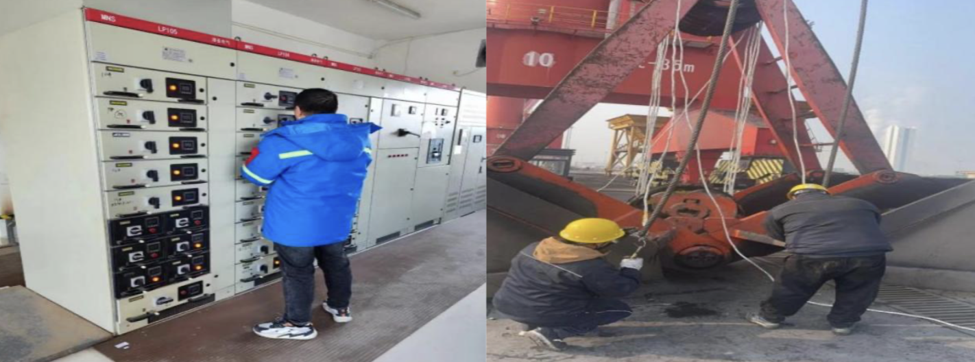射陽港區(qū)為保證春節(jié)期間射陽港電廠煤炭保供的運營效率與安全性,全面啟動港口設備維護和檢修工作。維修班組深查細找開展線路緊固和電氣排查工作,“望聞問切”查明設備“病因”,精準制定解決方案,根據實際情況進行易損零配件更換,確保設備在冬季高效運行;堅持高標準維修作業(yè)、潤滑保養(yǎng),通過系統(tǒng)性的檢查、嚴格的驗收流程,實施閉環(huán)管理,保障設備養(yǎng)護的全周期,不斷強化設施設備安全管控。
