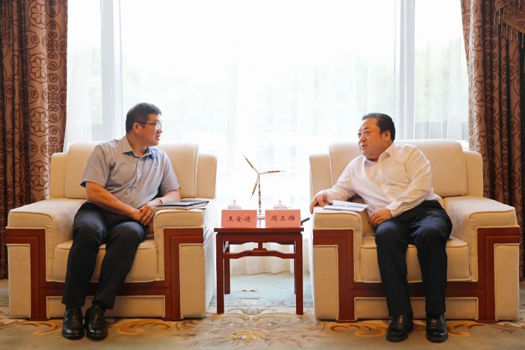 8月21日,集團(tuán)黨委書記、董事長周正雄會見金風(fēng)科技江蘇分公司總經(jīng)理王全德一行,雙方就開展業(yè)務(wù)合作進(jìn)行交流。集團(tuán)副總經(jīng)理袁欣,金風(fēng)科技江蘇分公司及集團(tuán)相關(guān)負(fù)責(zé)同志等參加。
