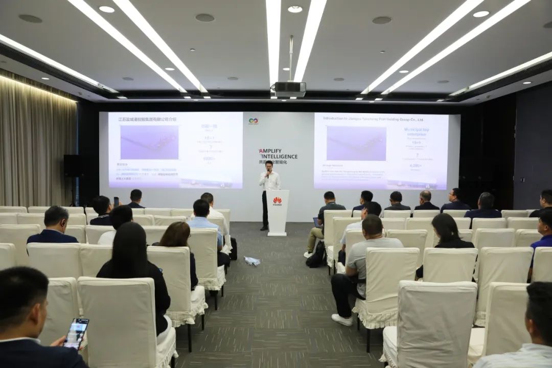 會議期間,陸帥在華為數智化展區參觀了智慧公路水運口岸展區,詳細聽取華為在港口數字化轉型和智慧港口建設等領域應用實踐情況介紹,并就數智基礎設施建設、智慧港口、智慧口岸等方面進行深入交流。參觀后,陸帥與華為全球技術服務副總裁盧煜等相關人員,就如何向智慧港口數字化轉型建設進行深入的高層交流。科技集團智能化裝備公司陳愷在《星河AI廣域網絡,加速行業數智化》分論壇分享了鹽城港IPV6+骨干網建設實踐相關案例。