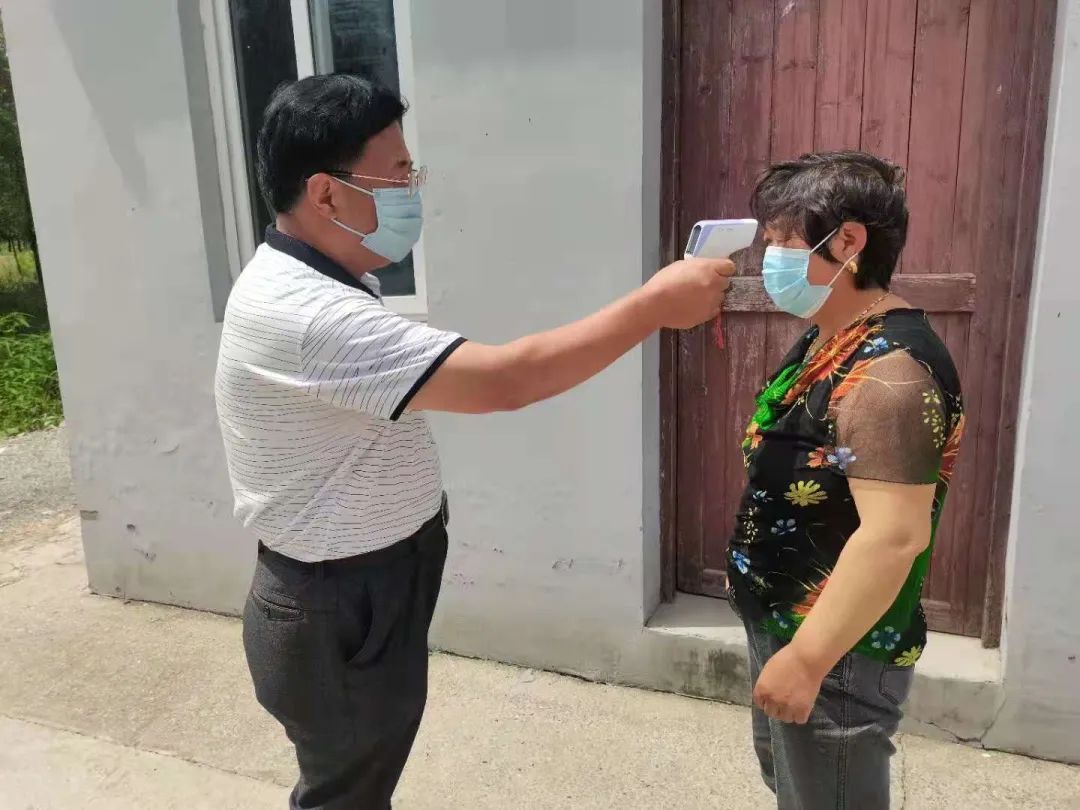 “您好請出示下健康碼和行程碼。”“您好,請測量一下體溫。”“請問您從哪里回來?有沒有做過核酸檢測,請登記一下信息。”在沿海林場場部區域,黨員們一絲不茍的對每一位進入人員進行檢查登記。