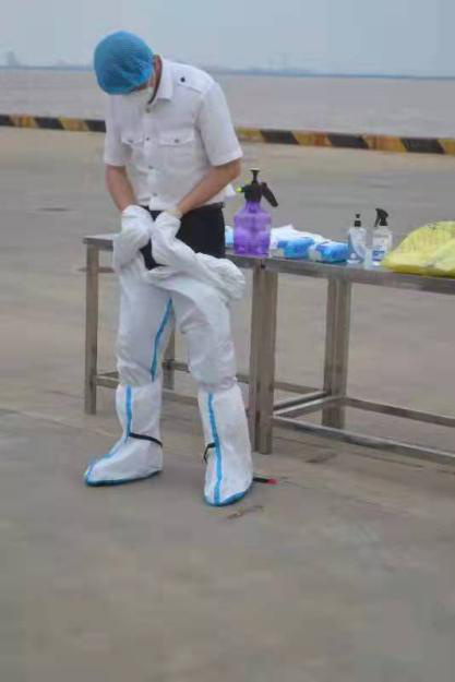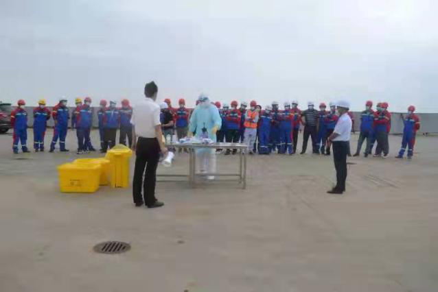 活動(dòng)中,黨總支書記韋林和作培訓(xùn)動(dòng)員,鹽城海關(guān)駐大豐港辦事處領(lǐng)導(dǎo)對港口作業(yè)人員宣講了常態(tài)化防疫管理對港口作業(yè)的重要性,專班工作人員就規(guī)范穿脫防護(hù)服、醫(yī)療廢棄物垃圾袋消毒和鵝勁式包扎流程進(jìn)行了示范操作。