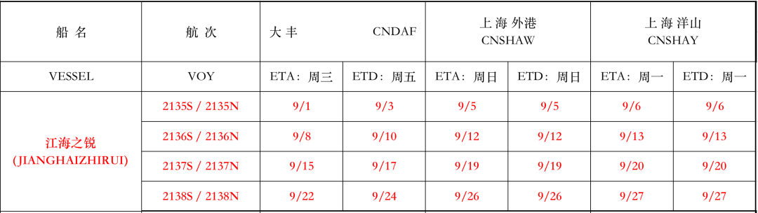 鹽城港大豐港區(qū)------上海港(洋山/外港)