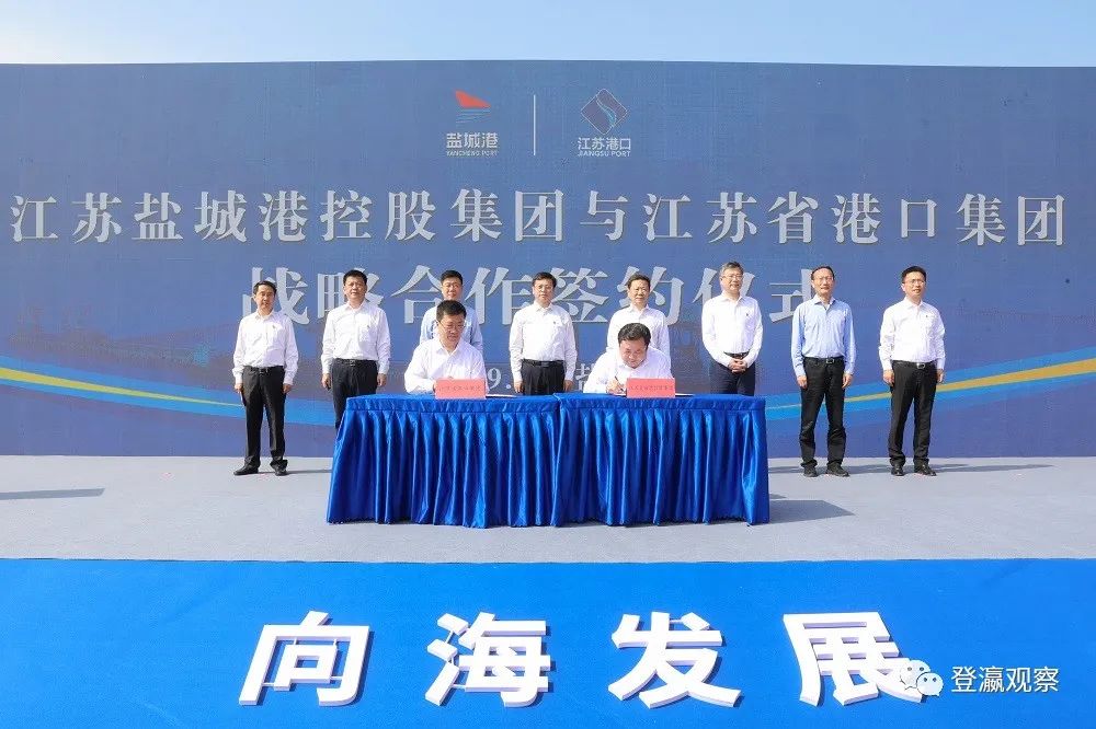 ▲江蘇鹽城港控股集團與江蘇省港口集團舉行戰略合作簽約儀式