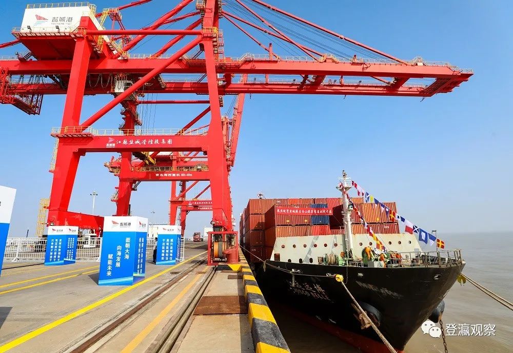 堅定不移向海發展,全力拓展開放格局!鹽城港至釜山港國際直達集裝箱班輪航線開航