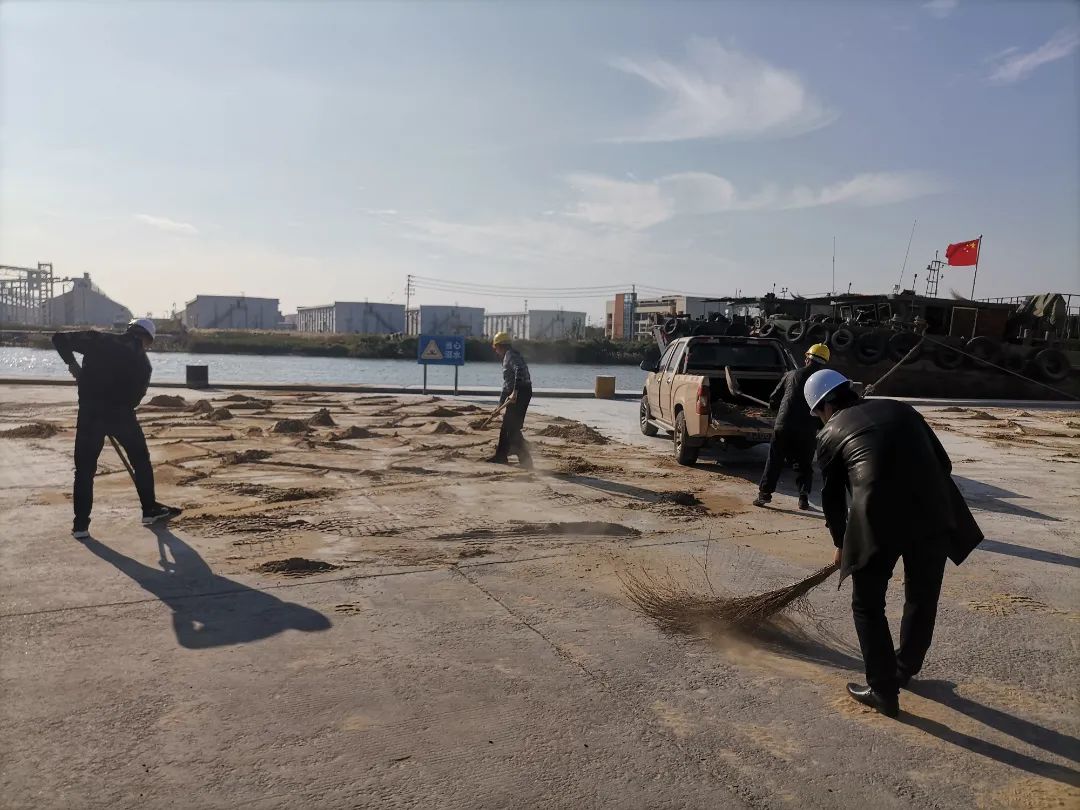 航運(yùn)(集裝箱)集團(tuán)在首次承接的黃砂集改散業(yè)務(wù)中。26個(gè)集裝箱小柜近800噸黃砂僅用時(shí)3.6小時(shí)就完成作業(yè),順利交貨,生產(chǎn)調(diào)度中心及運(yùn)營(yíng)操作部負(fù)責(zé)人全部在一線負(fù)責(zé)指揮調(diào)度,并在作業(yè)完成后,為了不影響場(chǎng)地的后續(xù)使用,帶頭扛起鐵鍬沖到現(xiàn)場(chǎng)清理,經(jīng)過近2小時(shí)的清理,3余噸的殘余沙石貨物全部清理完畢,不僅得到了貨主的贊揚(yáng),也向所有同事及兄弟單位展現(xiàn)了有困難一起上,見石頭齊心抬的團(tuán)隊(duì)精神。