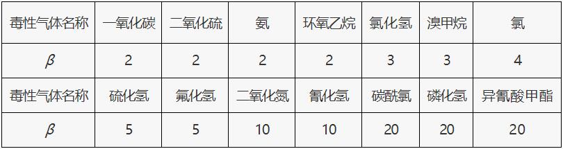 根據單元內危險貨物的類別不同,設定校正系數(β)值,在表1范圍內的危險貨物,其β值按表1確定,未在表1范圍內的危險貨物,其β值按表2確定。