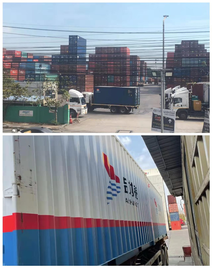 船舶停靠在湄南河畔BMT碼頭,一輛輛裝卸貨車駛向堆場,來往車輛絡(luò)繹不絕,穿梭在港區(qū)與智慧物流園區(qū)中,一眼就能看見鹽城港自備箱靚麗的“身影”。