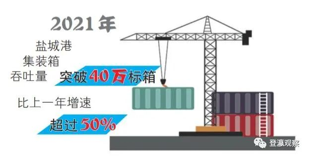 2021年,盡管受疫情影響,但鹽城港集裝箱吞吐量突破40萬標(biāo)箱,比上一年增速超過50%,越來越多的貨物通過鹽城港進(jìn)出。