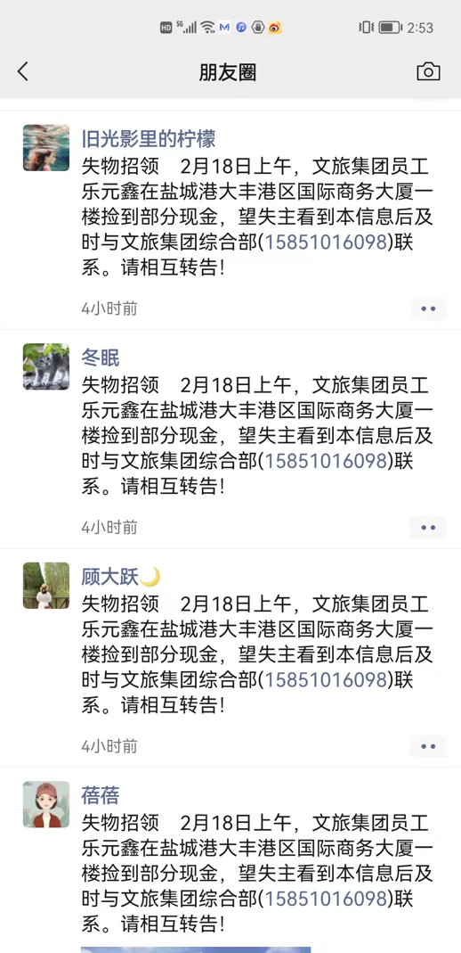 點贊!拾金不昧尋失主 朋友圈里傳真情