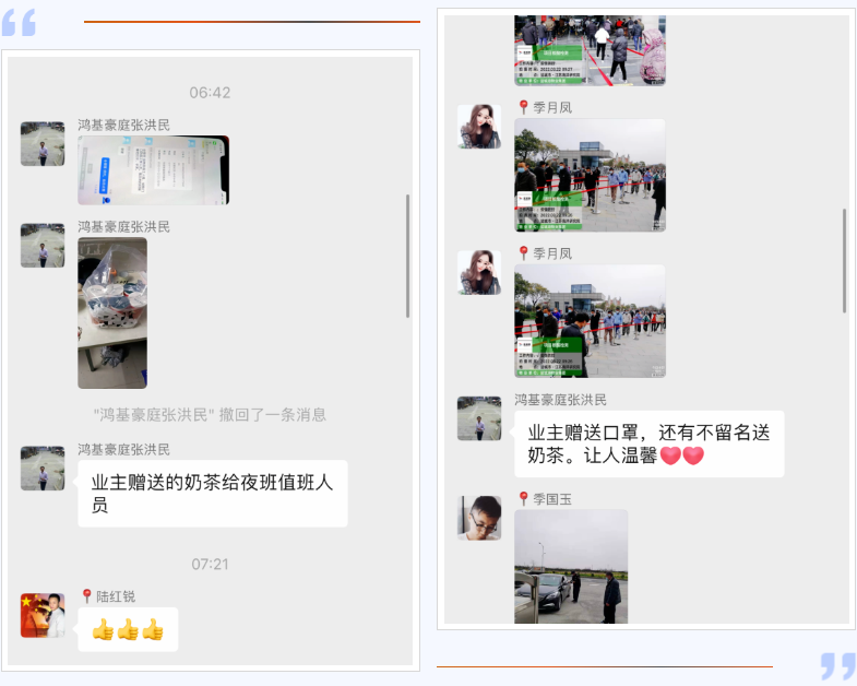 鹽城港物業人對防疫工作的責任與擔當,業主們看在眼里,暖在心里。有的自發捐助口罩、食品、暖寶寶,甚至牛奶、水果給值班“戰士”,讓戰斗在一線的物業人感到溫暖,聲聲感謝,是肯定,更是責任。他們時刻要面對疫情,在逆行中研究措施,在奔跑中調整姿勢。眾志成城、攻堅克難,防控疫情不松懈,這是一份植根鹽城港物業人內心的宣言??挂咔椤⑹仄桨?,鹽城港物業人用實際行動共同守護著我們美麗的家園。