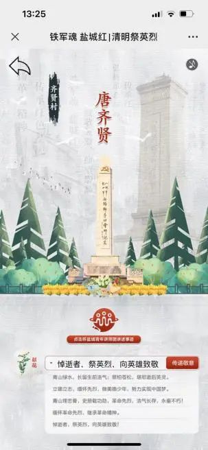 “雪融春暖清明時(shí),一花一樹寄哀思”,4月5日,大豐港區(qū)各子(控)公司、各單位員工集體開展線上追思,為劉學(xué)忠、吳長(zhǎng)安、陳朝榮等多位鹽城當(dāng)?shù)赜⒘夷?。通過(guò)“鐵軍魂、鹽城紅”云祭掃平臺(tái),聆聽一段故事、獻(xiàn)上一束鮮花、留下一段悼詞……整個(gè)過(guò)程簡(jiǎn)單卻莊重肅穆,寄托了無(wú)限的哀思。