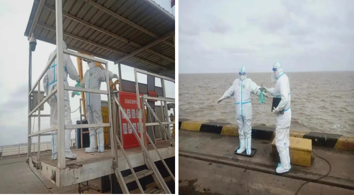疫情就是命令,防控就是責任。為認真貫徹落實國家、省、市委、市政府和集團的決策部署,嚴格按照“外防輸入,內防反彈”的要求,外派人員全部進入一線作業專班,大家主動放棄休息,按照《港口及一線人員新冠肺炎疫情防控工作指南》的要求:佩戴防護口罩、防疫手套、護目鏡、防護服等防疫用品,做好體溫檢測和信息登記,并禁止進入船員生活區域,不與船員接觸。作業完畢后,嚴格按照規定采取消毒措施。