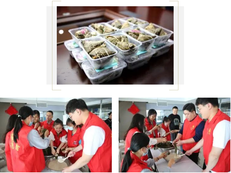 大家來到職工食堂,圍在一起動手包粽子?!靶●T,這粽子要怎么包啊?”大家在食堂小馮的指導下,積極參與,認真投入;小馮靈巧的雙手上下翻飛,將糯米、肉在粽葉中填滿扎牢;大家邊看邊學,手上的動作逐漸從生到熟,現(xiàn)場一片歡聲笑語,當一只只形態(tài)各異的粽子包好擺放在一起的時候,大家收獲了勞動的喜悅與樂趣,感受到了溫馨濃厚的節(jié)日氛圍,同時加強了彼此之間的交流,增進了情誼。