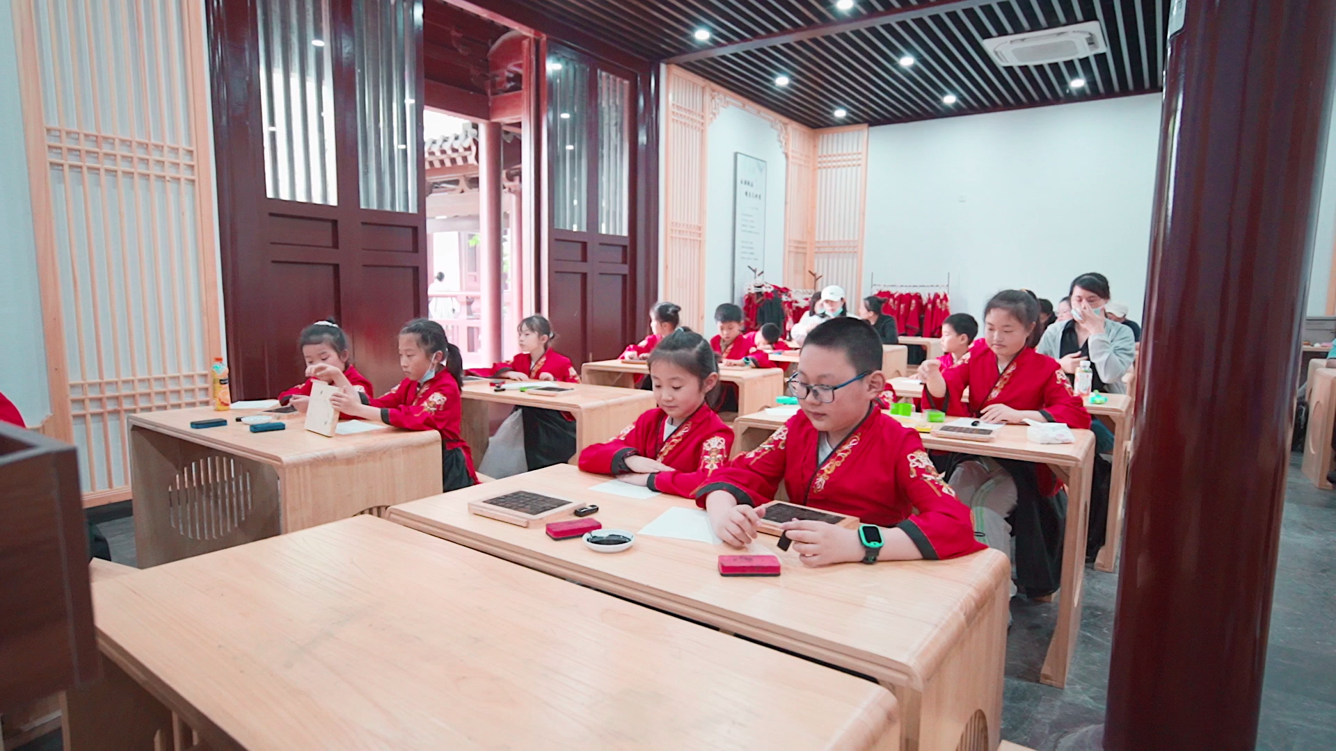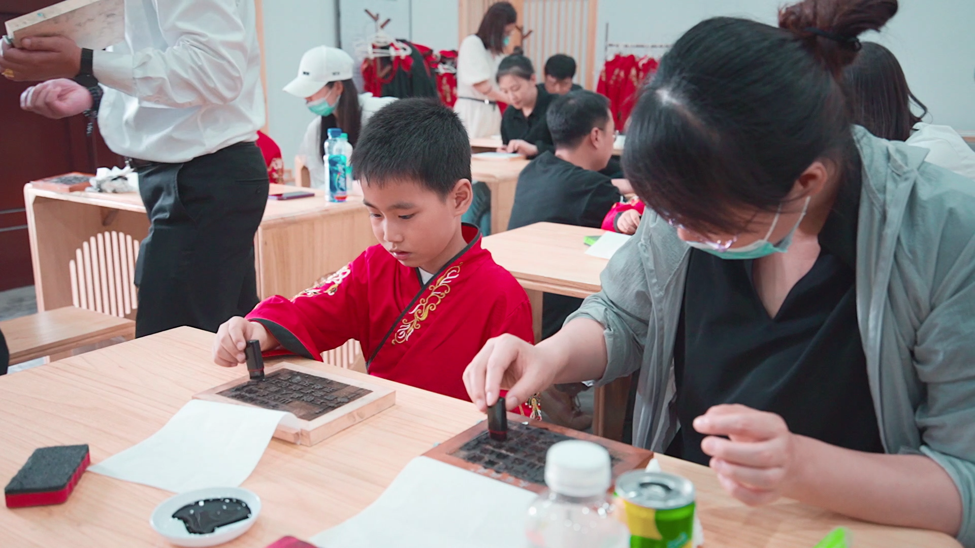 在小瀛臺國學館里,小朋友們穿著漢服走進國學課堂,悉心聆聽國學老師講解,學習活字印刷,將自己熟悉的古詩詞用一枚枚活字排列出來,在老師耐心的技術指導下,家長們也興致高漲地參與進來,從揀字到排版再到印刷,古老的印刷工藝被完美展現。