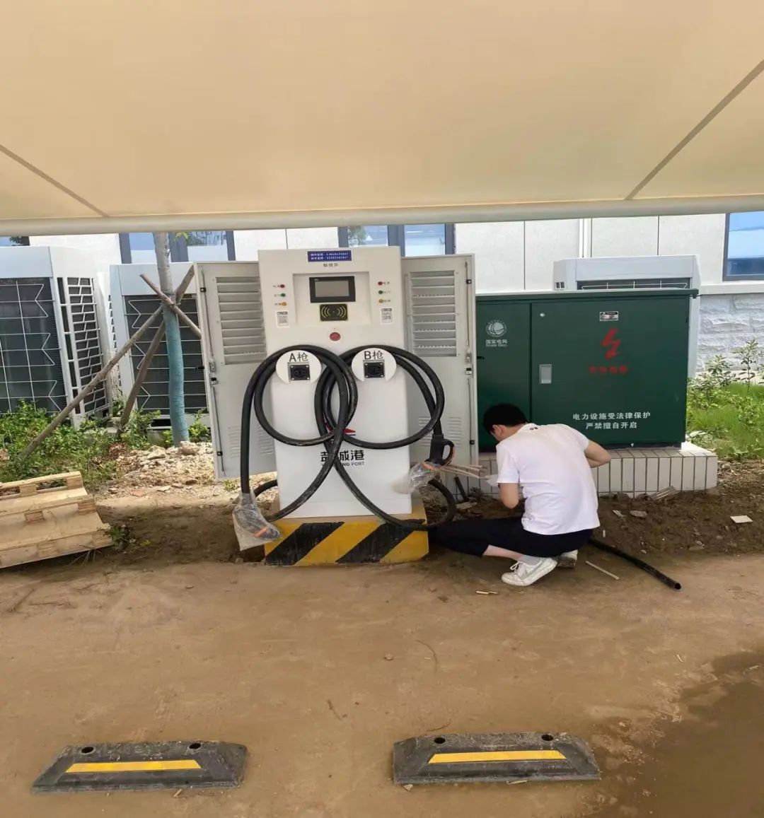 7月4日,亭湖港區(qū)的電動汽車充電站完成調(diào)試,正式投入使用。