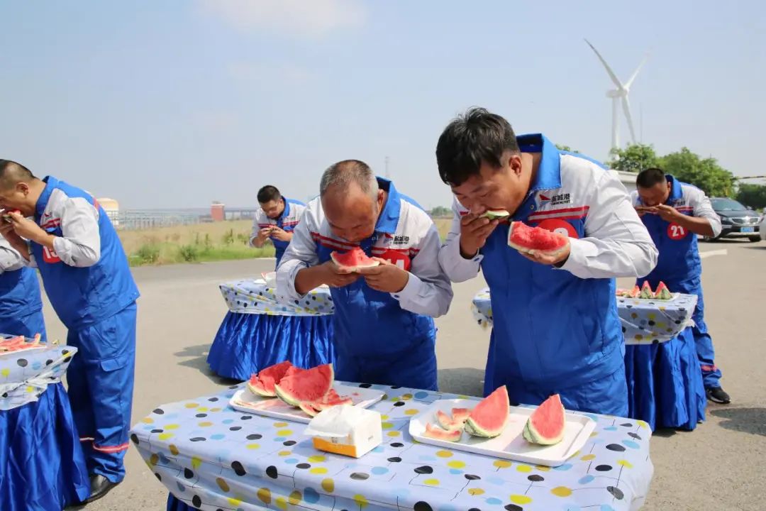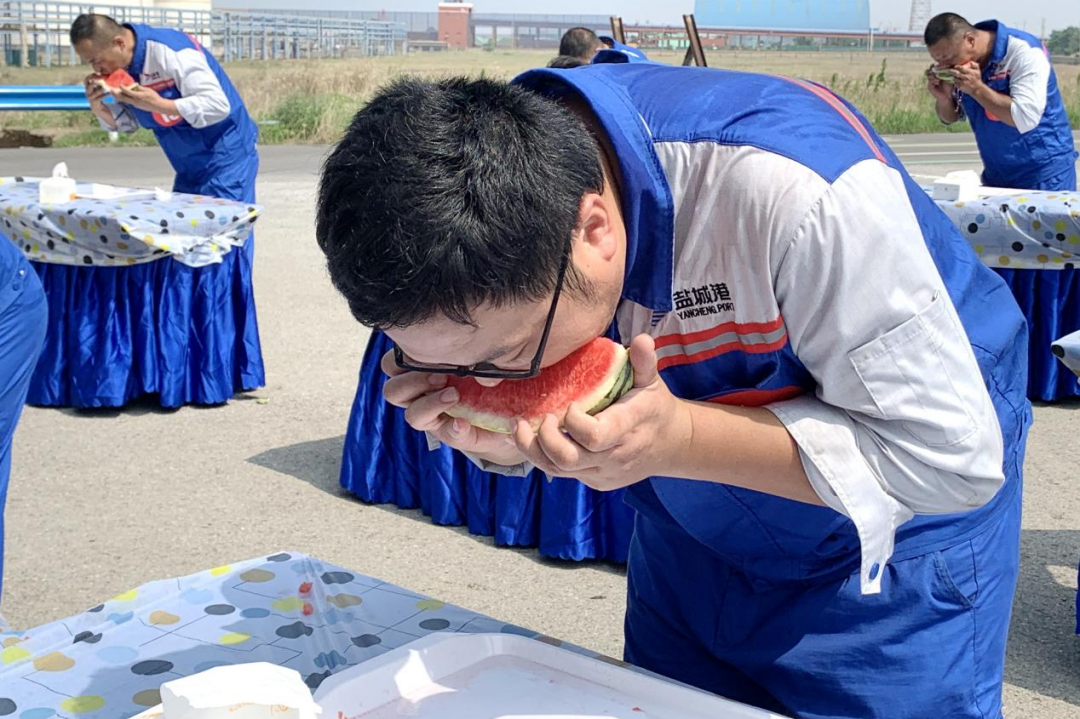 剛剛過去了小暑,大暑又匆忙到來,地表熱力值持續爆表,大豐港區一線職工不懼酷暑,堅守一線,與炎熱打上了一場持久戰。在這炎熱的酷暑時節,鹽城港大豐港區滿載著“一家人、在一起、手足情、過日子”的深情關愛,給一線的職工帶來了一場西瓜的狂歡之旅,在大豐港區石化碼頭舉行“瓜分甜蜜清涼一夏”吃西瓜比賽,和順國貿、中南匯、油品化工碼頭、成品油一線職工代表參賽。