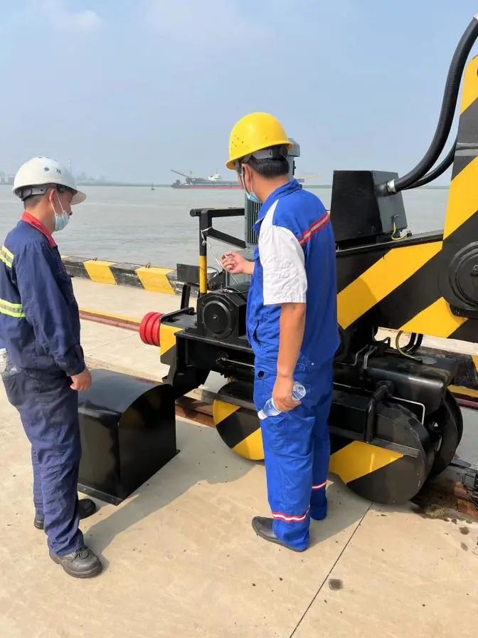 門機(jī)設(shè)備裝置涵蓋了電氣、機(jī)械、油路等眾多類型,回路復(fù)雜,工藝繁瑣,如細(xì)節(jié)處理不到位,后期極有可能存在作業(yè)隱患。自重件碼頭項目組裝工作開展以來,專項工作組成員頂著酷暑不懼“烤”驗,克服時間緊、任務(wù)重、人手少的實際困難,堅持經(jīng)常性現(xiàn)場巡檢,保證每個關(guān)鍵項目都有現(xiàn)場督查,每個部件交付都安排相應(yīng)崗位人員參培。對在現(xiàn)場督查過程中發(fā)現(xiàn)的部分油管母線連接松動等問題,工作組第一時間要求廠家按標(biāo)準(zhǔn)進(jìn)行限時整改,并督促施工方在現(xiàn)場嚴(yán)格把關(guān),確保后期驗收工作高質(zhì)量、高標(biāo)準(zhǔn)按時完成。