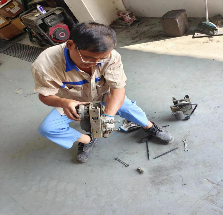 今年以來,響水港區(qū)的各類作業(yè)量再攀新高,技術(shù)維修組壓力與日俱增,但壓力也是動力,如何提升維修效能成了關(guān)鍵。技術(shù)組化被動為主動,改變以往只注重搶修,不關(guān)注故障原因的簡易工作思維,積極思考各類故障尤其是同類故障重復(fù)產(chǎn)生的原因,通過各類技術(shù)改造,努力實現(xiàn)設(shè)備設(shè)施的本質(zhì)安全,如將碼頭消防箱門栓改成卷簾式,大幅降低了零件損壞率。另一方面,技術(shù)組通過優(yōu)化工藝減少維修過程中的人力依賴。如抓斗更換鋼絲繩,以往采用拉直平鋪方式需要5個修理工同時協(xié)作,單臺更換需消耗半天時間,技術(shù)組成員經(jīng)過研究制作了鋼絲繩卷架,如今更換一臺只需要2-3人,2小時便能完成更換工作,大大提升了工作效率。