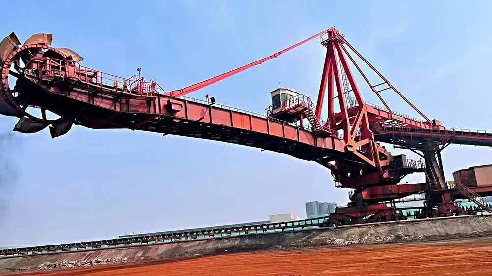 堆料機聳立在堆場之上,在貨物堆存和取料作業中起到承上啟下的關鍵作用,堆取料能力達2500t/h,可行走900米,作為全年不休、日夜奮戰的敬業戰士,能夠連續將貨物又快又均勻的轉運到皮帶機上,高效率、高質量完成各項生產任務。