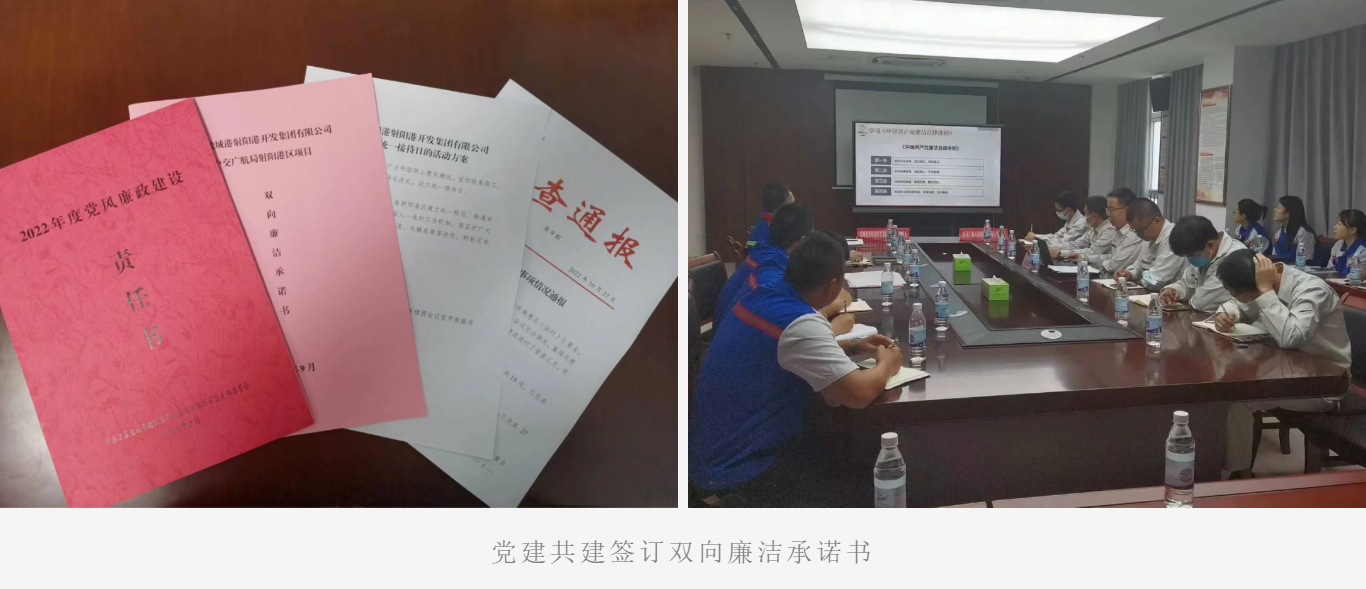 亮實招,扛起責任,挺紀在前拉起廉潔防線。射陽港區黨總支專題研究黨風廉政建設工作,制定《2022年全面從嚴治黨主體責任清單》,逐級簽訂黨風廉政建設責任書,一級抓一級,層層落實責任;召開黨風廉政建設工作大會、警示教育大會、書記上廉政專題黨課,組織赴廉政教育基地接受實境教育,開展廉政專項談話,主要領導逢會必講廉潔,常態化學習教育時刻警醒全體員工知敬畏、守底線。